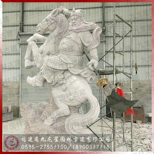 12尺高關公騎馬拿刀石像如期完成