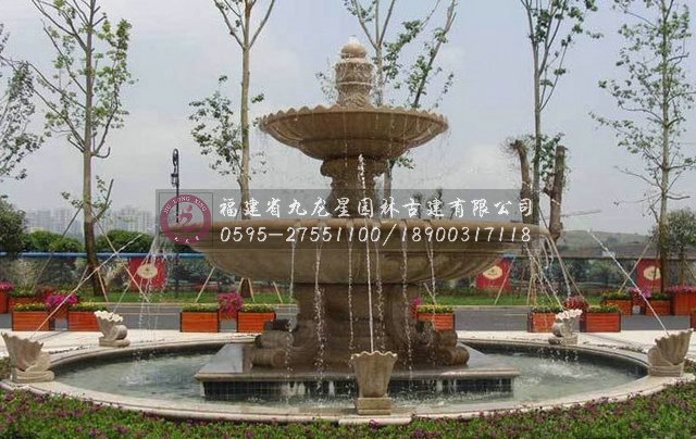 石雕噴泉水景具有美化環(huán)境、烘托活躍 氣氛的功能,能更好體現(xiàn)其美感和自然特性,起到點綴、襯托、渲染裝飾效果。 噴泉水景往往是人們視覺的焦點,是構(gòu)成一定空間環(huán)境的景觀中心。